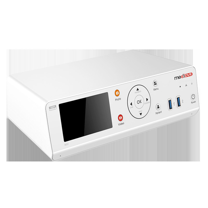 MediDVR registra imágenes médicas y videoclips desde prácticamente cualquier dispositivo de video médico (endoscopio, artroscopia, cámara quirúrgica, C-Arms, ultrasonido, etc.).Los videos e imágenes grabadas se pueden guardar en una unidad flash USB conveniente, disco duro móvil USB, NAS o al disco duro interno del MediDVR. Características: Graba fácilmente videos e imágenes nítidas de 1080p Previsión y grabación de vídeo IP 4.3 ¢ Pantalla táctil LCD y resistencia Escaneo de código QR para control remoto directo por teléfono móvil o PC MP4, formato de vídeo MOV todos los soportados Interfaz universal, funciona con casi todas las interfaces de vídeo Almacenamiento universal, funciona con todas las principales unidades USB Flash, NAS, USB HDD y SATA HDD Soporte de vídeo Full HD hasta 1080p@60fps Apoya el pedal de pie USB tradicional Soporte de manejo USB Se admite red para transmisión de vídeo en vivo Soporte de teclado estándar USB para información y notas del paciente Tamaño pequeño, bajo coste y alta calidad Todas las entradas se pueden enlazar a la salida de vista previa DVI Reproduce vídeos fácilmente Atajos para cambiar rápidamente de fuente de vídeo y medios de almacenamiento Soporte para micrófonos incorporados, aumento ajustable ¢ Característica única y adicional para PMD Duración de la batería de hasta cinco horas de grabación de vídeo Entrada doble HDMI y SDI Tamaño muy compacto para aplicaciones portátiles Detección automática de la señal de entrada, resolución y velocidad de fotogramas. Especificaciones